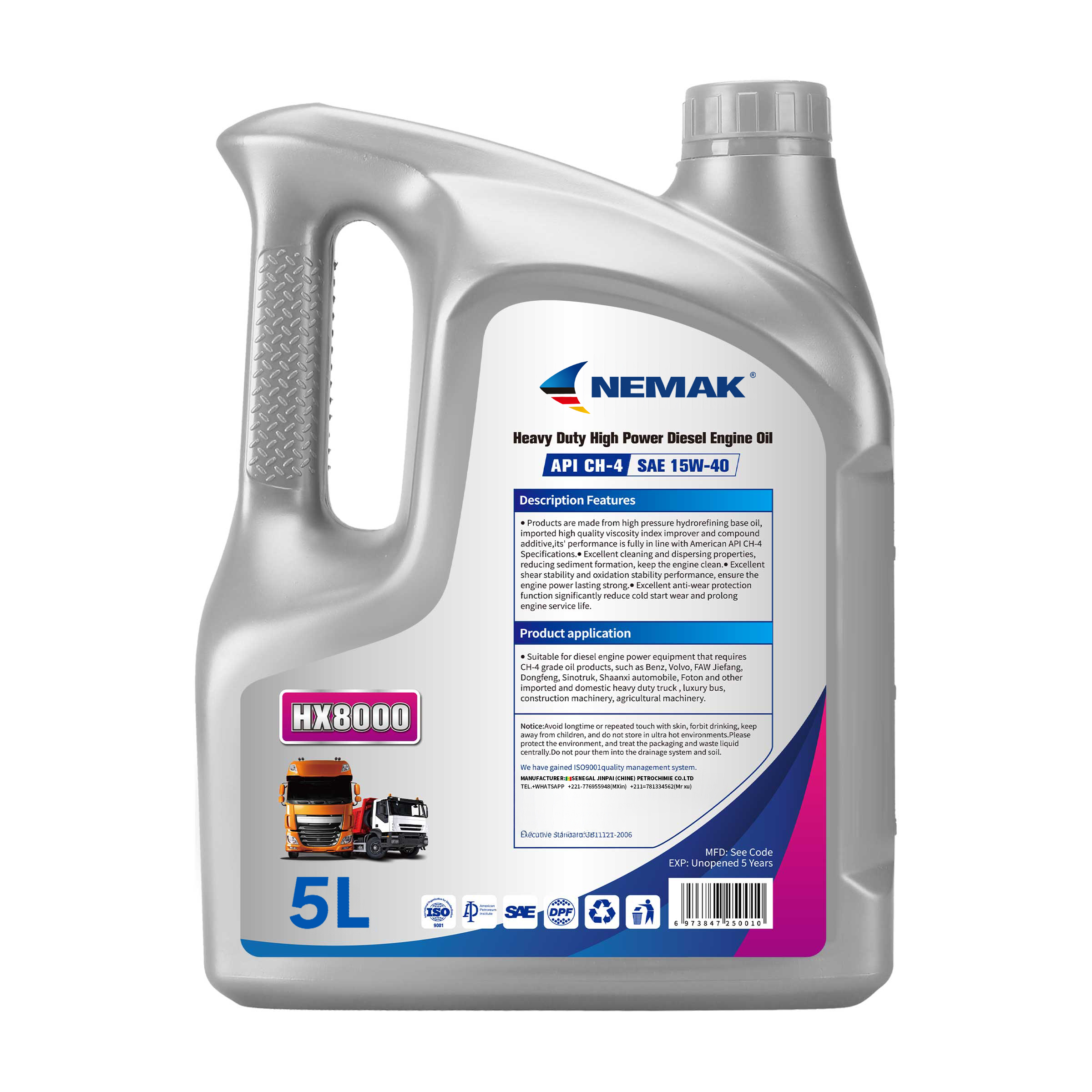 | Emballage | 4L, 5L, 20L, 205L | Catégorie | Huile moteur diésel |