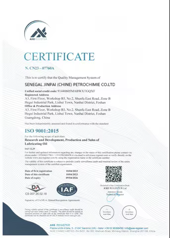 SENEGAL JINPAI (CHINE) PETROCHIMIE CO.LTD est une entreprise spécialisée dans le mélange d’huiles lubrifiantes, renforcée par l’avantage de la synergie technologique sino-sénégalaise. Firme bien implantée sur le marché ouest-africain, elle centrera ses activités sur le concept clé de « procédé précis + adaptation locale », et fournira des solutions de lubrification à haute fiabilité pour les secteurs du transport commercial, des machines de construction et de la fabrication industrielle. Elle constitue un pont clé entre la technologie pétrochimique chinoise et les besoins spécifiques des conditions de fonctionnement locales en Afrique de l’Ouest.